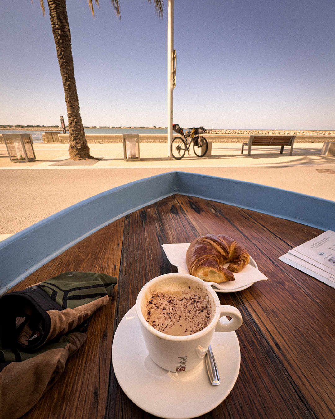 Auf Grund des engen Zeitfensters, bleiben durchaus lohnenswerte Erkundungen der Naturräume hier im Süden außen vor. Auch in die Dörfer und Städte kann ich nur oberflächlich eintauchen. Aber das Gefühl der Freiheit und die Freude über das einfach auf das Rad sitzen und an das Mittelmeer zu fahren ist enorm groß. Und plötzlich ist es da. Das Meer. Der Sand. Der Wind und die Sonne. Ich setze mich an die Wasserlinie und feiere mich mit einem kalten Getränk selbst.